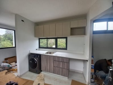 Las imágenes a continuación muestran trabajos realizados en diversos puntos del País, los muebles suelen tener acabados en melamina hidrofuga y cuarzo de la mejor calidad para crear un ambiente acogedor y sofisticado